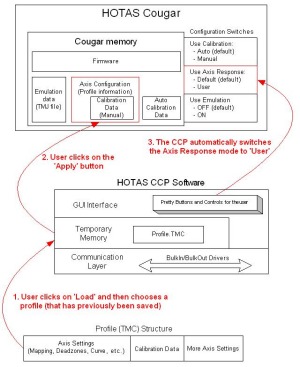 This article is intended to demystify the confusion concerning the relationship between the calibration data and the profiles for the Thrustmaster HOTAS Cougar. In order to understand the interaction between the Cougar, the CCP and the profiles, we must first understand the memory structure of each component.