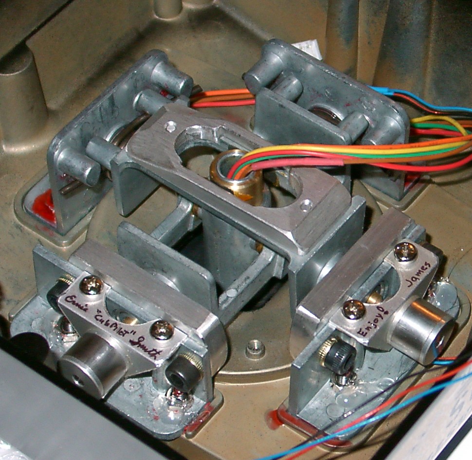 The ÜberCougar, so named after a certain delighted German received his modded Cougar from Ian, sets about to remove the Lower axis play and the X axis play, and reduce future wear within the gimbals. This is achieved by re-machining the gimbals to much tighter tolerances with brass surfaces and roller bearings. By the way, it doesn't matter how much wear you currently have with your gimbals, as Ian replaces all the wear surfaces.
